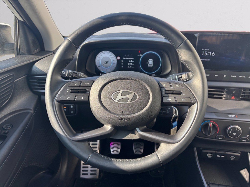 Hyundai Bayon in allestimento XLine con motore 1.2 MPI benzina, vettura praticamente nuova con garanzia ufficiale disponibile presso la nostra concessionaria a Gaglianico, nel Biellese. Crossover compatto dal design dinamico e giovanile, con soli 6.000 km è un'occasione imperdibile per chi cerca un'auto versatile e dal look grintoso risparmiando rispetto al nuovo. Consumi contenuti e grande maneggevolezza la rendono perfetta per la città e le strade della provincia di Biella.